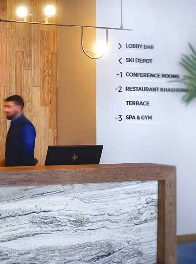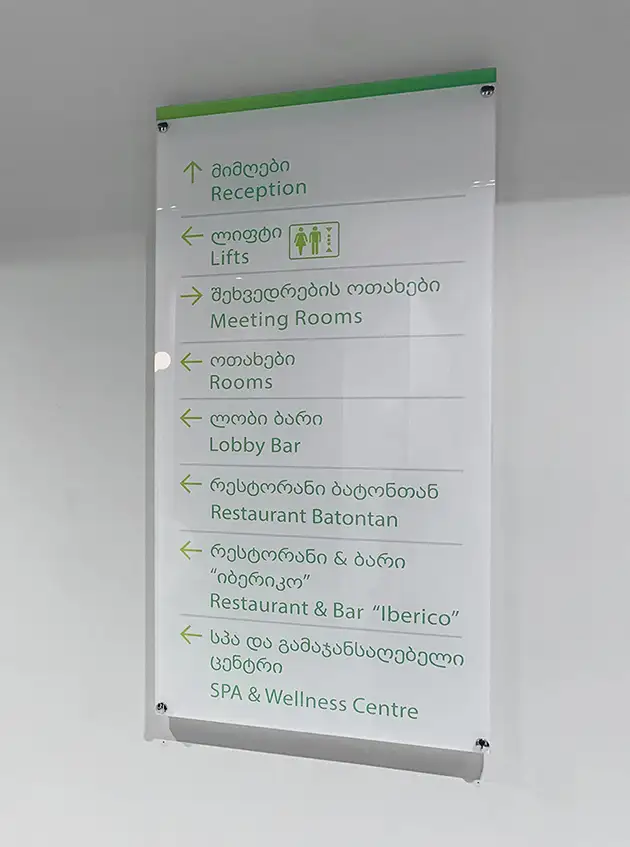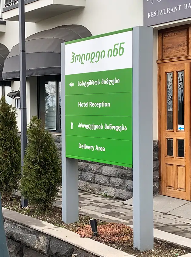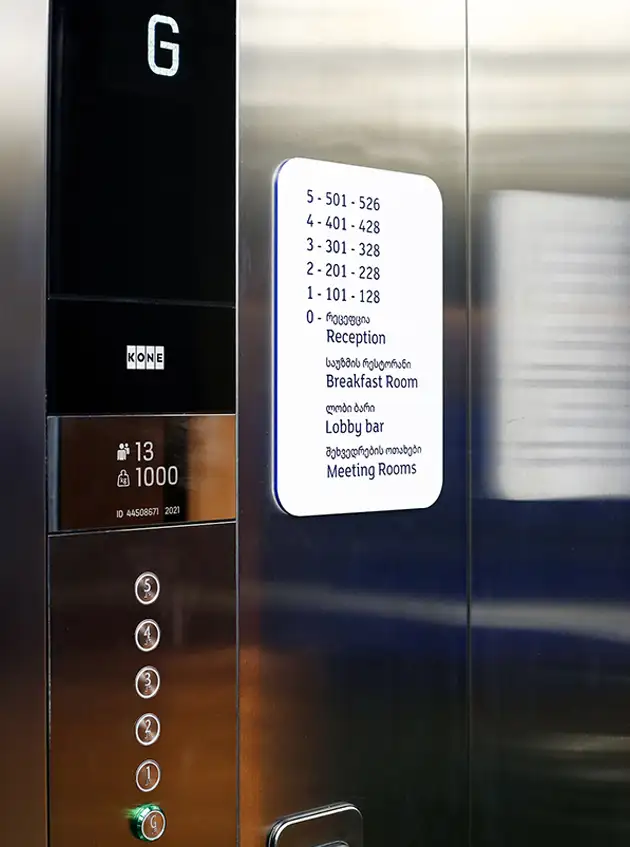 გთავაზობთ ყველაფერს, რაც სასტუმროების გაფორმებას სჭირდება: დიზაინ-პროექტის შემუშავებიდან ყველა ვიზუალური ელემენტის დამზადებისა და მონტაჟის ჩათვლით. ჩვენი მიმართულებებია ფასადის კონსტრუქციები, სანავიგაციო მანიშნებლები, ინტერიერისა და ექსტერიერის ბრენდირება მიმღები სივრცეების, კვების ზონების, სართულების, სასტუმროს ოთახების კარებისა და პერსონალის სივრცეებისთვის.