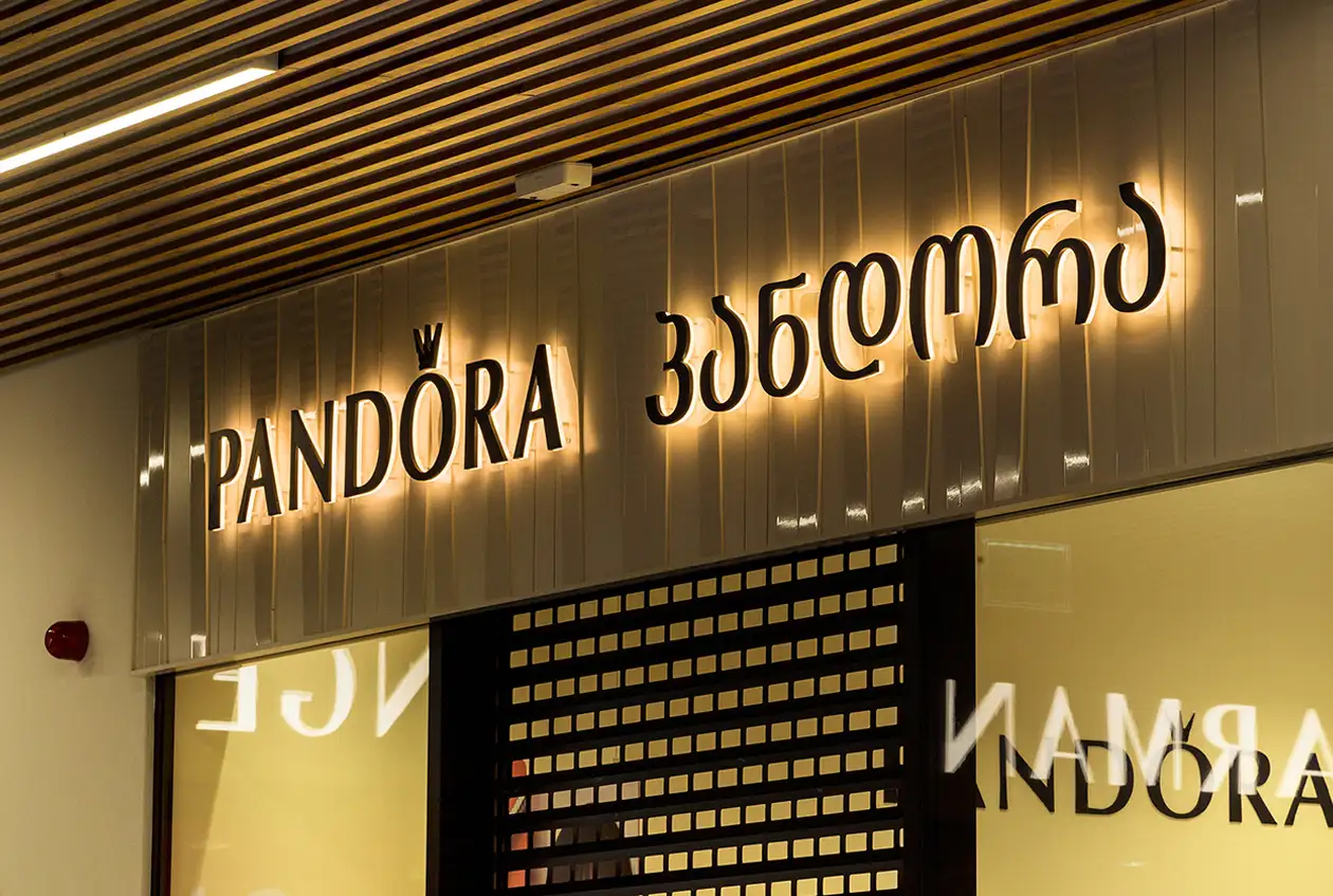 - მეტალის ასოები: მტკიცე და გამძლეა. ხშირად გამოიყენება უკანა განათებით, რაც ამონათებული ფონის ეფექტს ქმნის.