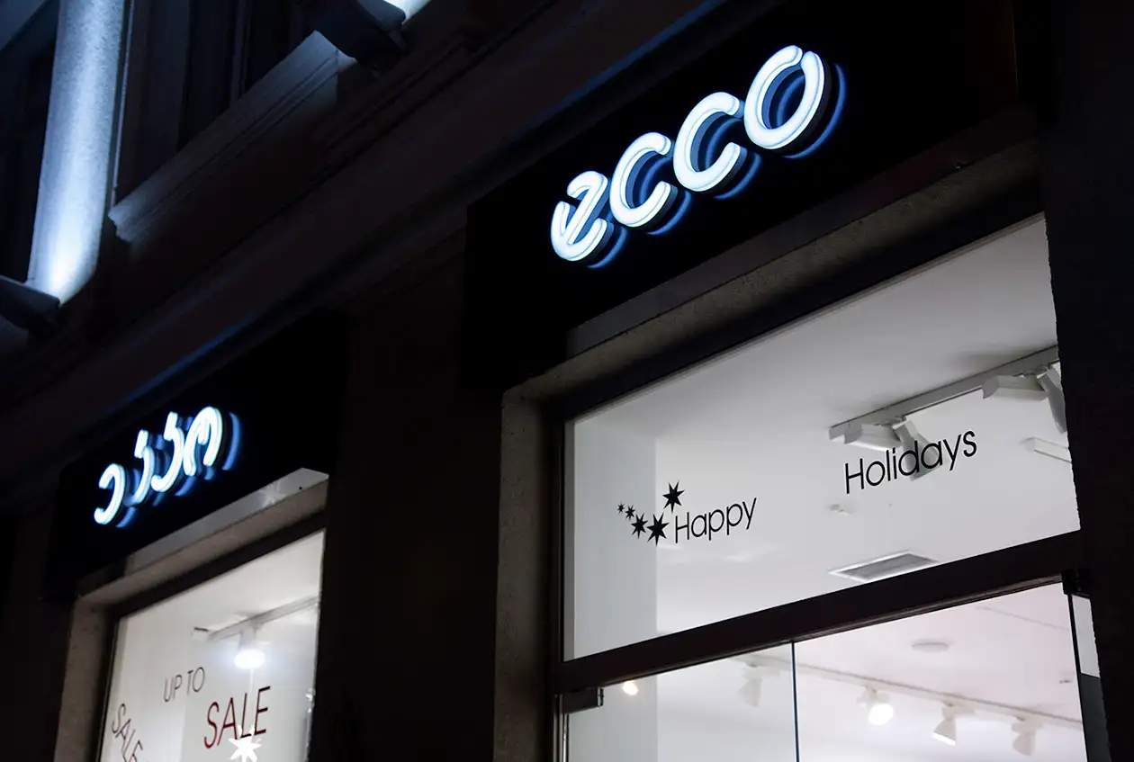 - პლასტმასის ასოები: გამოირჩევა სიმსუბუქით და ფორმების მრავალფეროვნებით. ხშირად მზადდება წინა განათებით, რომ კაშკაშა და შესამჩნევი იყოს.