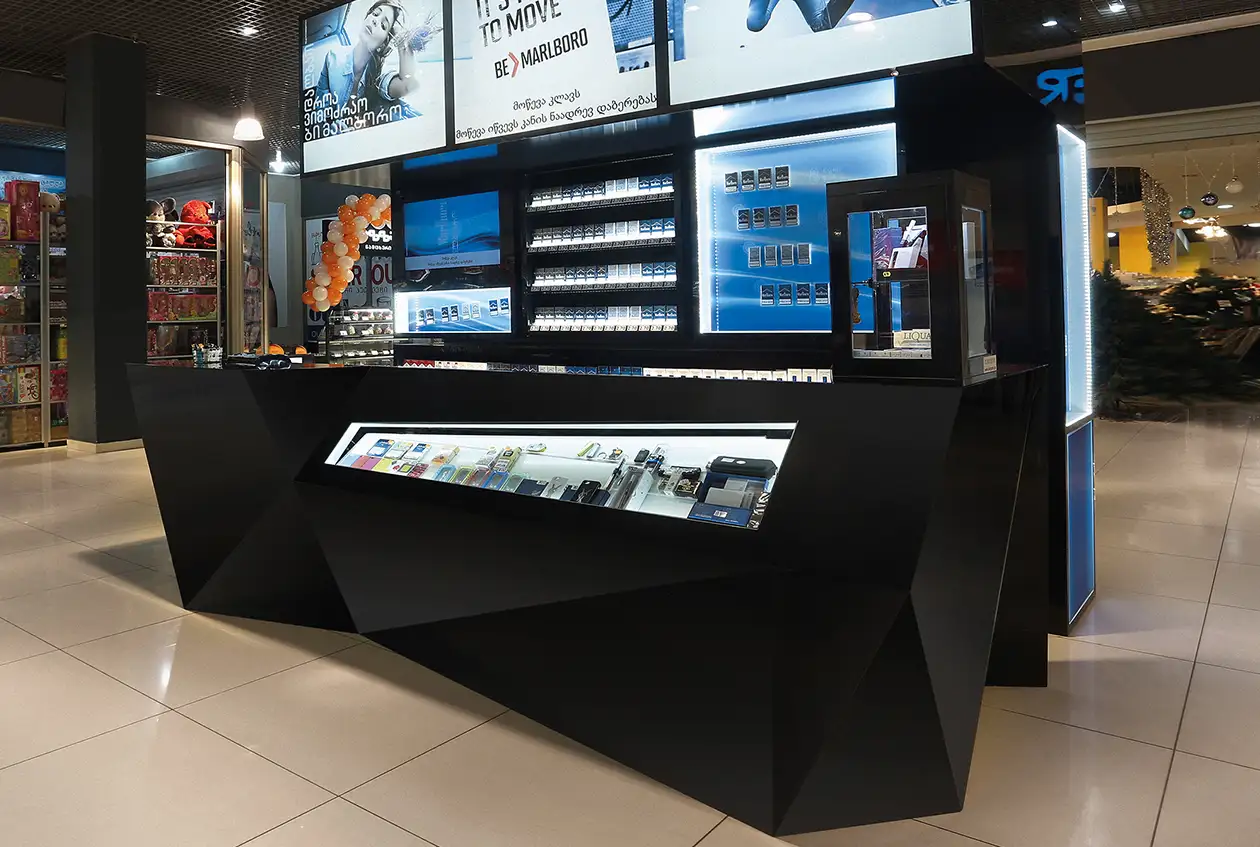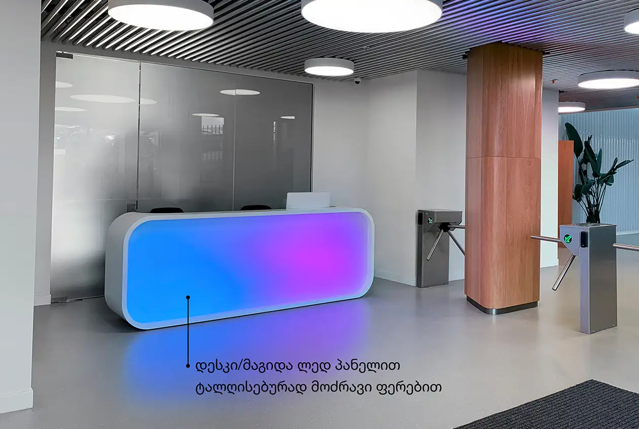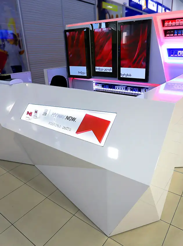 პრომო და მისაღები მაგიდები, დახლები, სტელაჟები